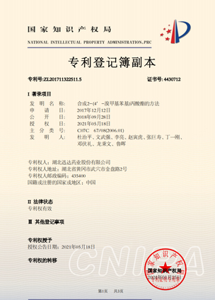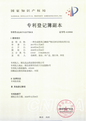 公司擁有一支高素質(zhì)科研隊伍,具備專業(yè)而高效的研發(fā)能力。近幾年,共取得科技成果30項,其中9項獲國家發(fā)明專利,2項獲湖北省科技進(jìn)步獎,開發(fā)新產(chǎn)品8個,綠色合成、手性合成和催化等技術(shù)引領(lǐng)行業(yè)發(fā)展。主要銷往歐美、日本、韓國、中東、印度等40多個國家和地區(qū)。